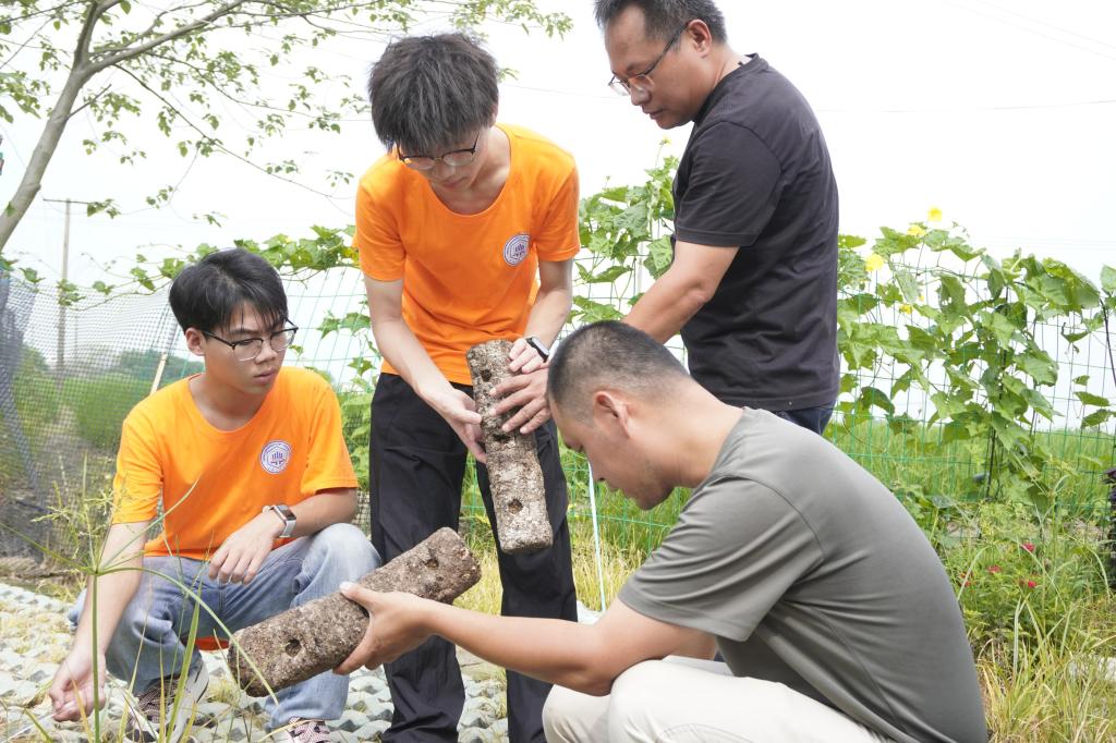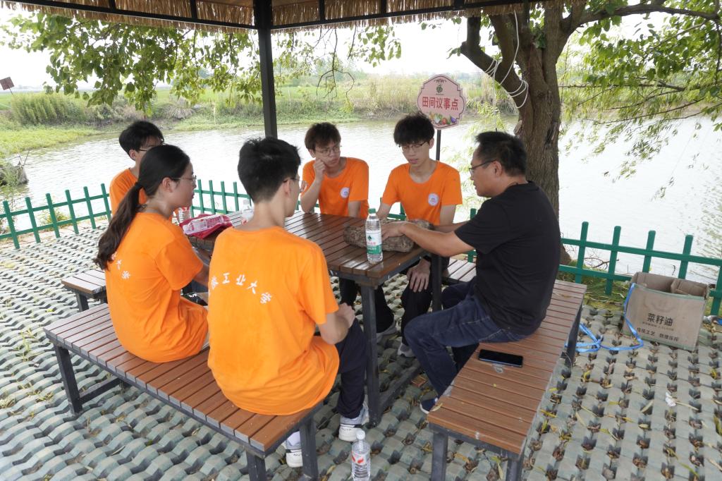 实践队首站深入和县兴圩村,迅速转变角色,化身“网格助理”,积极融入基层治理工作中。队员们发挥电气专业优势,为独居老人排查电路隐患、更换设备,叮嘱老人用电注意事项,同时,主动协助清扫院落。他们走村入户普及防诈、防溺水及秸秆禁烧政策,响应村民诉求,积极参与管道检修、环境整治等具体工作。在驻村工作队引领下,队员们深入田间地头调研特色产业,在黑木耳产业园,他们认真学习“地插式微喷”“微孔出耳”新技术,详细了解“标准化种植+电商”销售模式,感受科技赋农带来的巨大变化;在葡萄园,他们向种植户请教精准水肥管理和“套袋种植”技术;在新建的香菇大棚里,他们动手实践菌棒注水等操作,亲身体验种植的辛劳与乐趣。而复垦生态藕塘的蜕变历程,更让队员们深刻感受到基层治理的创新与实干。