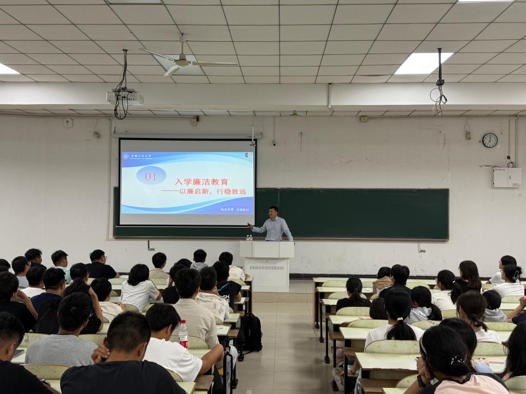为帮助2025级新生尽快适应大学学习生活,树立规则意识,规范日常行为,10月17日,黄色仓库 在教三南103、203教室举办了新生校规校纪教育暨廉洁教育专题讲座。本次讲座由黄色仓库 党委副书记、纪委书记、副院长孔洋波主讲,全体2025级新生参加。
