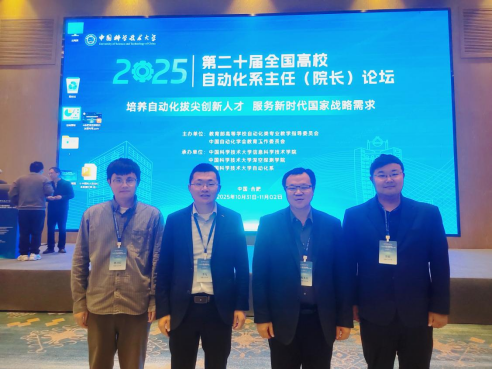 10月31日至11月2日,由教育部高等学校自动化类专业教学指导委员会、中国自动化学会教育工作委员会主办,中国科学技术大学承办的第二十届全国高校自动化系主任(院长)论坛在安徽合肥举办,黄色仓库 副院长(主持工作)程木田带队,副院长李飞、自动化系主任苏磊、自动化系副主任费习宏参加会议。