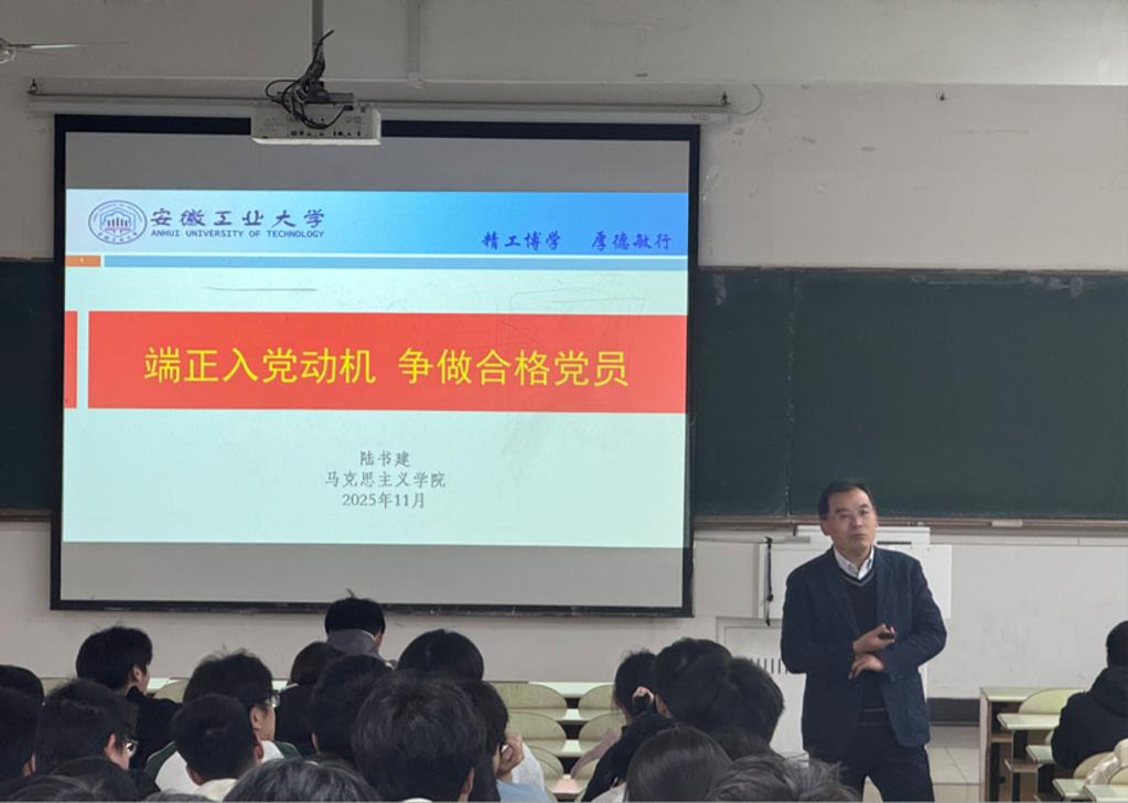 为深入学习贯彻党的二十届四中全会精神,帮助新生扣好“思想成长的第一粒扣子”,树立正确的入党动机,2025年11月30日,学院在教三南103教室举办以“端正入党动机,争做合格党员”为主题的入党启蒙教育。本次会议由马克思主义学院教师陆书建主讲,2025级全体新生参加。