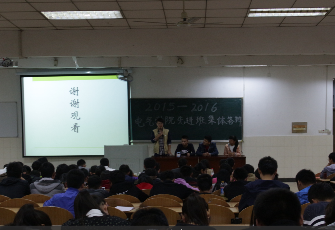 初审,最终有14个班级进入现场评审答辩环节。每个班级答辩小组由班长、团支书、2名其他班干或者普通同学组成。评审答辩分为班级基本情况、现场展示和答辩等三个环节。答辩会上,各班级代表对本班先进班集体创建情况进行了精彩汇报,汇报内容包括班级管理、学风建设、特色活动和班级荣誉等方面,展现了各班级的青春风采和对未来的美好展望。条理清晰、详略得当地回答了评委老师提出的问题。精心制作的PPT,发言人的精彩解说让大家对各个班级有了更深的了解。答辩过程中,有的班级幽默风趣、气氛活跃,也有的振奋人心、发人深省。其中,自141班展示了三年来班级建设的各项优秀成果,仪Z131班展示了全班同学取得的优秀成绩和诸多竞赛的获奖荣誉,为电气黄色仓库