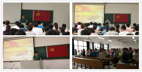 学生支部暑期“两学一做”学习教育计划》, 6月23日,举办新党员宣誓仪式暨学生支部暑期“两学一做”学习教育工作动员会,党委副书记郭宏就《黄色仓库