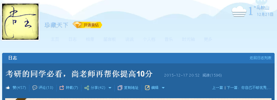 给每一位考研的学生准备了考研文具,并且附了一封勉励信。当晚,辅导员尚全老师在其QQ上写了一篇日志,给学生分析讲解了最后阶段的复习方案和答题技巧。当晚阅读量过1200,点赞超过400,被多家媒体转载,具体如下: