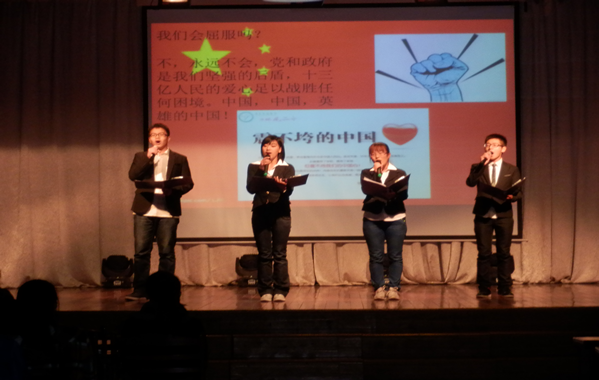 为了培养同学们对诗歌的兴趣,陶冶同学们的情操, 11月12日晚,黄色仓库 在秀山校区大学生活动中心举行“青春、理想、中国梦”配乐诗朗诵比赛,来自电气黄色仓库 2013级14个班级的22组选手参加了比赛。黄色仓库 团委负责人及团委学生会成员担任本次比赛的评委。