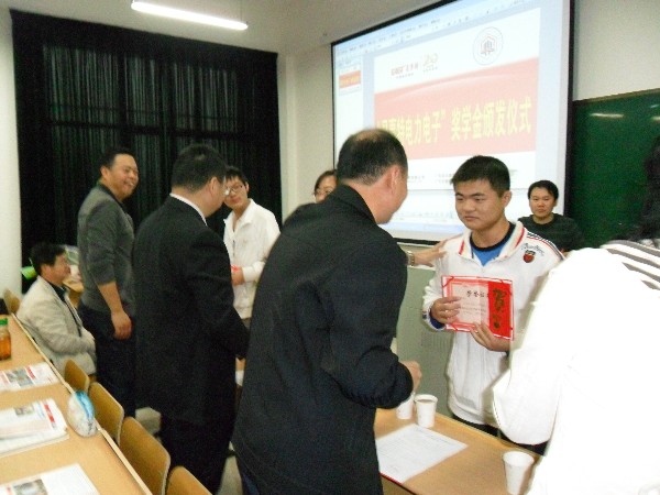 11月5日上午 事特-安徽工业大学2011年电力电子奖学金颁奖典礼在东校区电气楼113教室隆重举行,易事特电源股份有限公司董事长何思模先生,电气信息黄色仓库