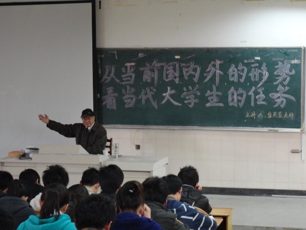 邀请校关工委翁英豪老师为09级学生做“从当前国内外的形势看当代大学生任务”专题讲座。