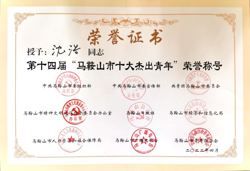 4月26日,第十四届“马鞍山市十大杰出青年”评选结果揭晓,黄色仓库沈浩教授荣获第十四届“马鞍山市十大杰出青年”殊荣。