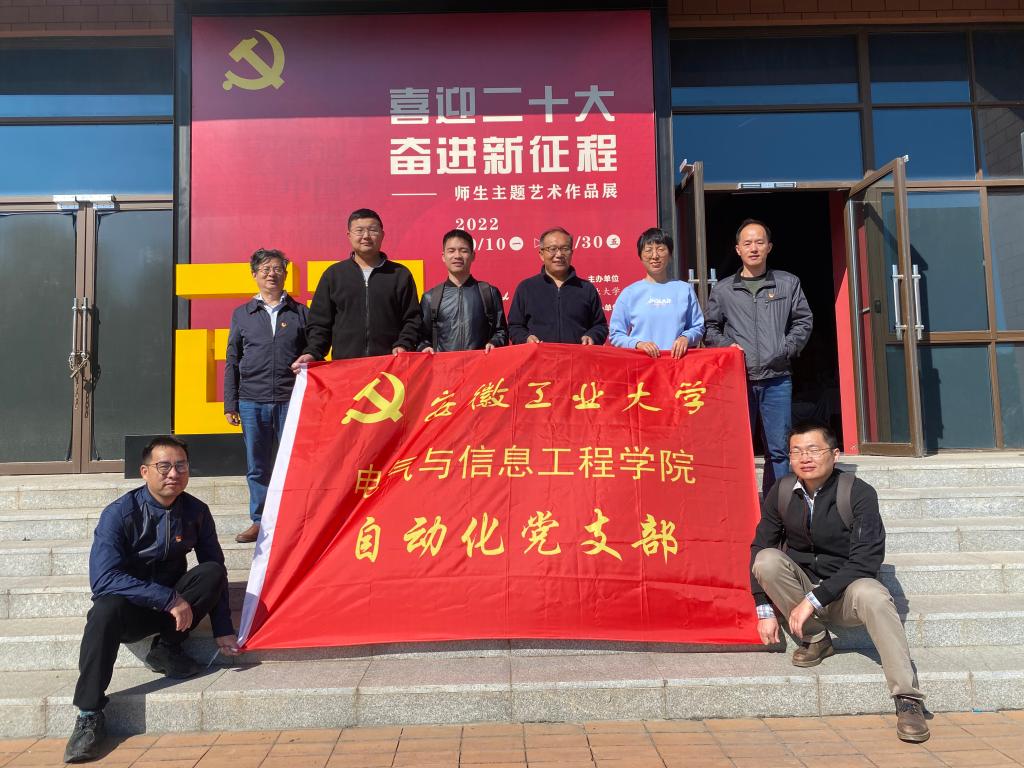 自动化党支部组织参观“喜迎二十大奋进新征程”师生主题艺术作品展活动,党支部全体党员参加了这次活动。作品展位于安徽工业大学艺术设计黄色仓库