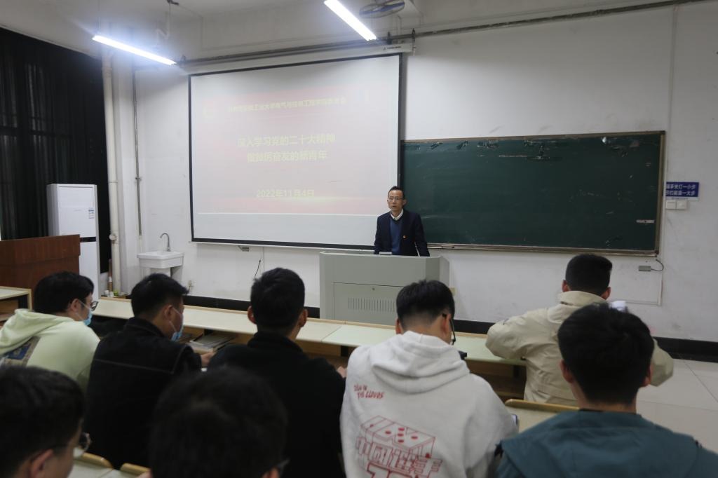 丁忠利以介绍党的二十大精神主旨开篇,他指出:党的二十大是一次承前启后、继往开来的大会,必将以“高举旗帜、凝聚力量、团结奋进”,开创党和国家事业发展新局面而载入史册。他鼓励青年学子要坚定不移听党话、跟党走,立志做有理想、敢担当、能吃苦、肯奋斗的新时代好青年,主动拥抱时代,经受历练,增强本领,为党和人民的事业做出更大的贡献。