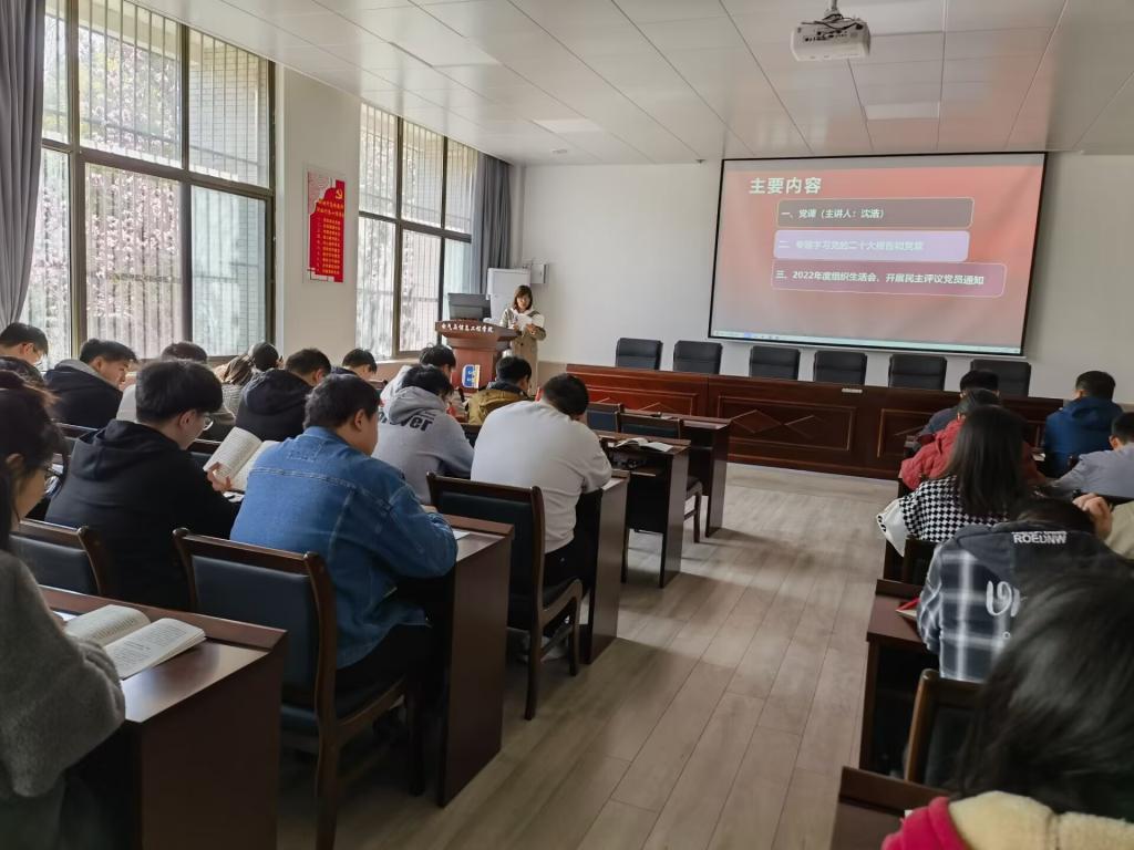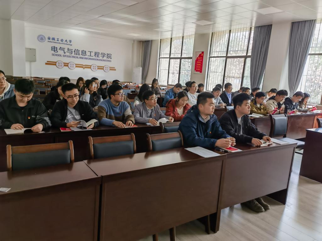 研究生学术型党支部在电气楼113室专题学习了党的二十大报告和党章,支部全体党员、部分积极分子参加本次学习,会议由支部副书记李冉主持。