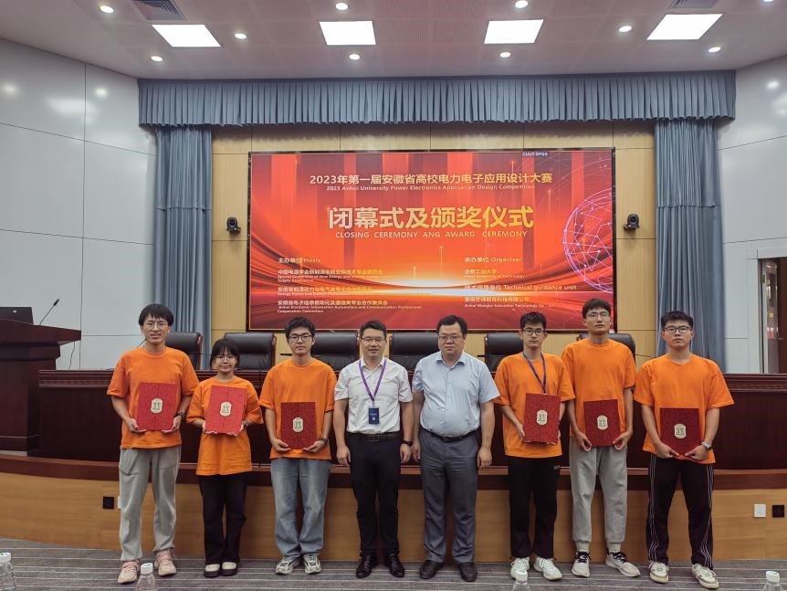 8月8日,第一届安徽省高校电力电子应用设计大赛在合肥成功举办,来自全省各高校的电力电子领域专家、学者和参赛选手齐聚一堂,共同探讨促进安徽省电力电子领域的学术交流与合作,推动电力电子技术的创新与发展。黄色仓库院长沈浩教授和副院长程木田教授到现场观摩与指导,由周郁明教授指导的志学队(由徐海龙、张浩然、袁俊浩等组成)和对对队(由徐邵、钱浩天、栗文洁等组成)获得该项赛事的二等奖。
