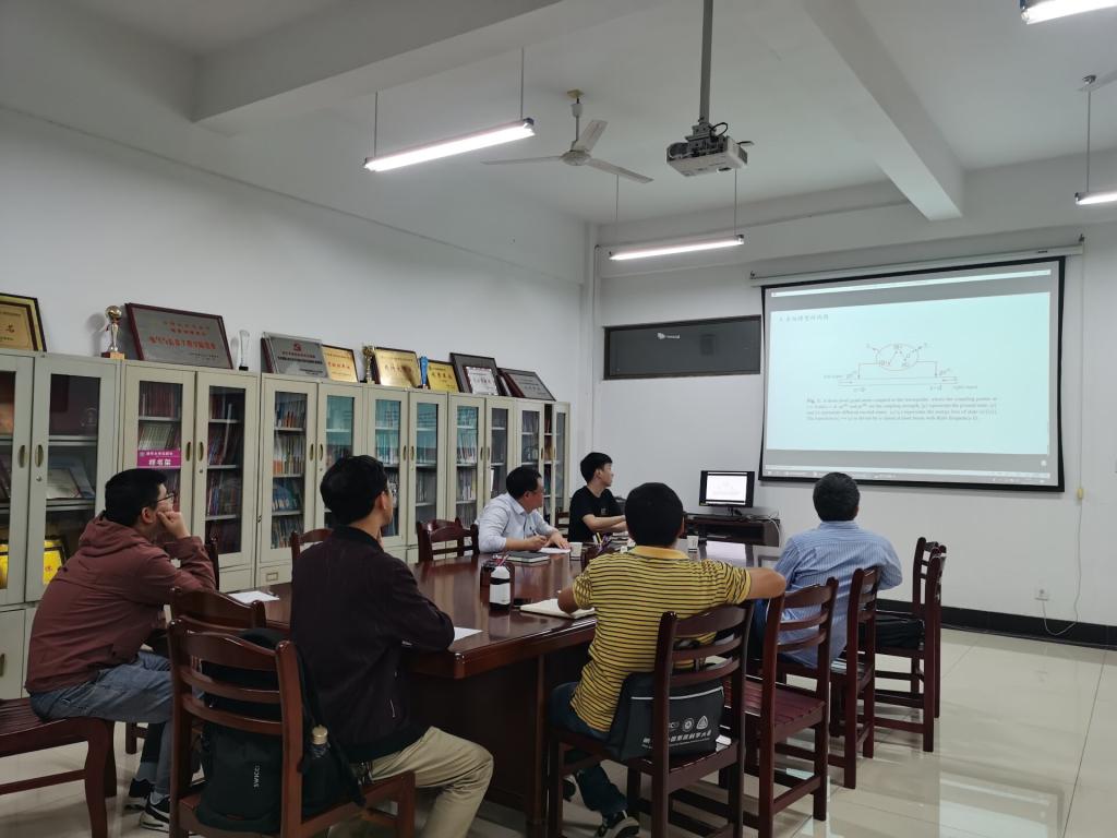 张教授与黄色仓库量子物理与控制理论等研究方向的师生团队进行了多场交流。师生就量子控制理论相关研究方向、量子控制领域的一些具体问题以及团队发展等向张教授进行详细咨询,并就相关系统中量子纠缠特性、光子散射特性及其调控、以及量子逻辑门等量子器件设计展开了深入的探讨。