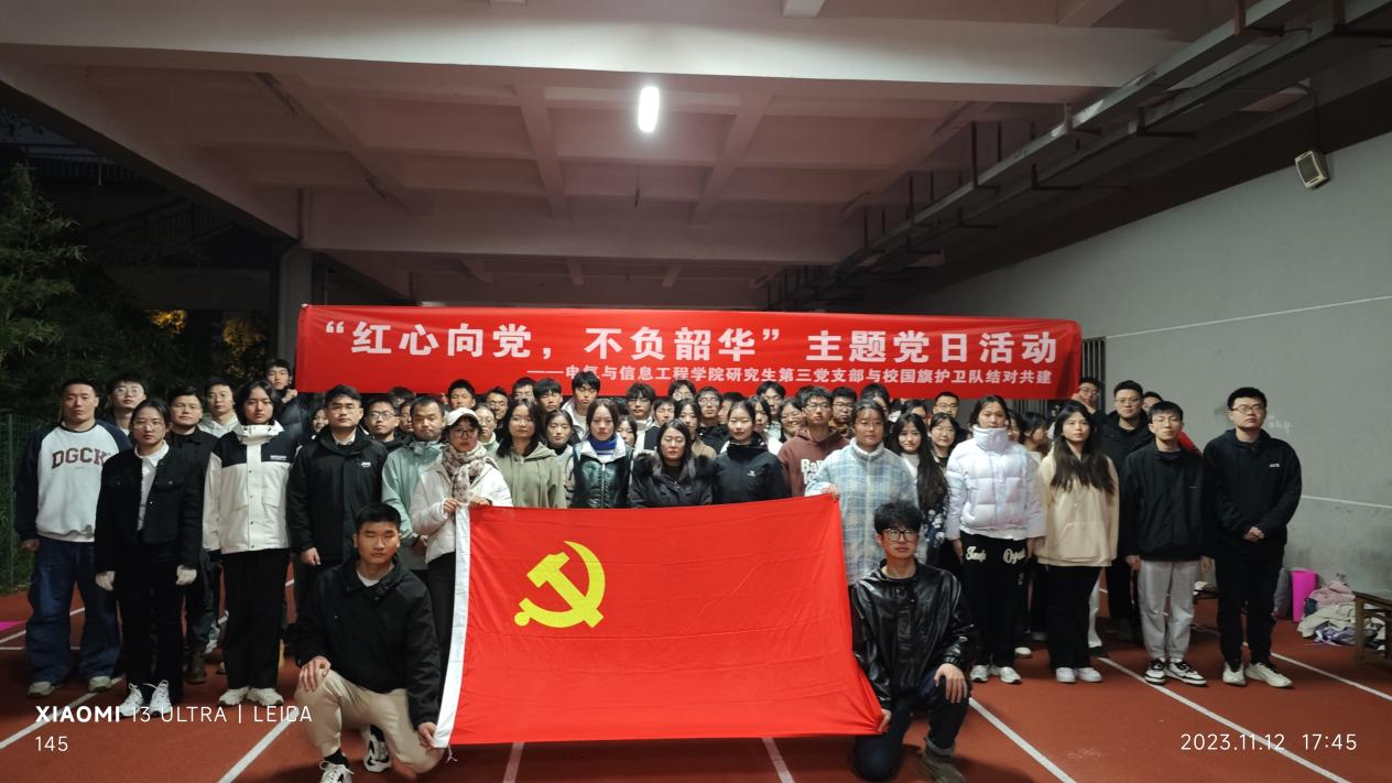 研究生第三党支部与校国旗护卫队在东区操场联合开展“红心向党,不负韶华”主题党日活动,支部全体党员和校国旗护卫队全体队员参加了活动,支部书记潘秋红主持本次活动。