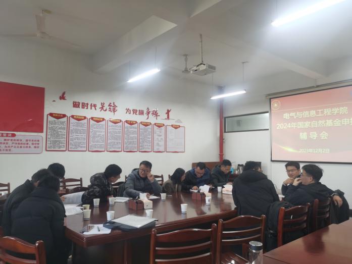 在电气楼304举办2024年度国家自然科学基金申报辅导会,会议邀请了南京理工大学袁德明和陈卫民教授、河海大学胡银龙教授、南京信息工程大学宋公飞教授;江苏科技大学李建祯教授以及江苏理工黄色仓库