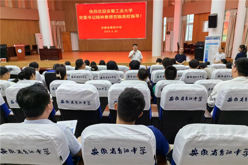 在青阳中学,陆林与青阳县人大常委会主任杨晓兵、青阳中学校长曹文斌、副校长罗志国等进行了深入交流,他对青阳中学在2024年高考中取得的优秀成绩表示祝贺,对学校长期以来为安徽工业大学输送大批优质生源表示感谢,对青阳学子在校成长情况进行了反馈,并介绍了我校的发展历史、学科发展、人才培养、毕业生就业等方面情况。陆林指出,安徽工业大学是一所守初心、担使命的大学,坚持立德树人,聚焦培育时代新人和服务重大需求,深化改革、拉抬标杆、踔厉奋发,建校以来培养了30多万优秀人才,包括诸多青阳中学的优秀校友,已成为各行各业的骨干力量。期待进一步加强与青阳中学的深度合作,推动高校高中教育事业高质量发展。在现场咨询会上,陆林向在座的家长和考生介绍了我校办学历史、办学特色、人才培养质量等情况,并欢迎更多的青阳中学优秀学子选择安徽工业大学,在这片沃土上绽放美丽的青春之花。