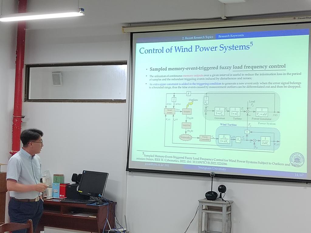 报告中,Ju H. Park教授介绍了岭南大学“Advanced Nonlinear Dynamics and Control”实验室的主要研究方向——马尔科夫跳变系统、网络化控制系统、故障诊断及容错控制、模糊系统和神经网络等,深度分享了该实验室目前在这些领域取得的一些最新成果;重点展示了相关控制理论在最近备受关注的实际工业应用中的研究,车辆自动驾驶中激光雷达和摄像头传感器的信号处理,车辆主动悬架系统的控制,风力发电负载频率控制及网联车辆协同编队控制系统等方面的实际应用。