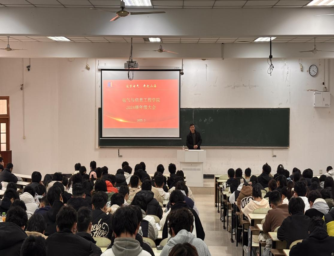 于佳山校区第三教学楼203教室召开2024级年级大会。本次大会由2024级辅导员孔洋波主讲,全体2024级学生参与。
