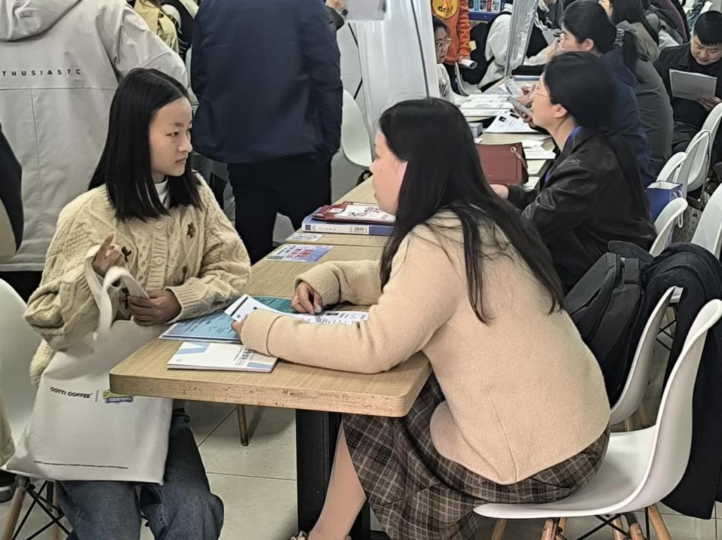 招聘会现场,学生们首次近距离体验就业实战,观摩学长学姐如何应对场景化问题等岗位初试。在辅导员蒋安东的鼓励下,学生主动对接企业招聘主管,咨询岗位核心能力要求、职业发展通道等关键问题,沉浸式感知就业生态。