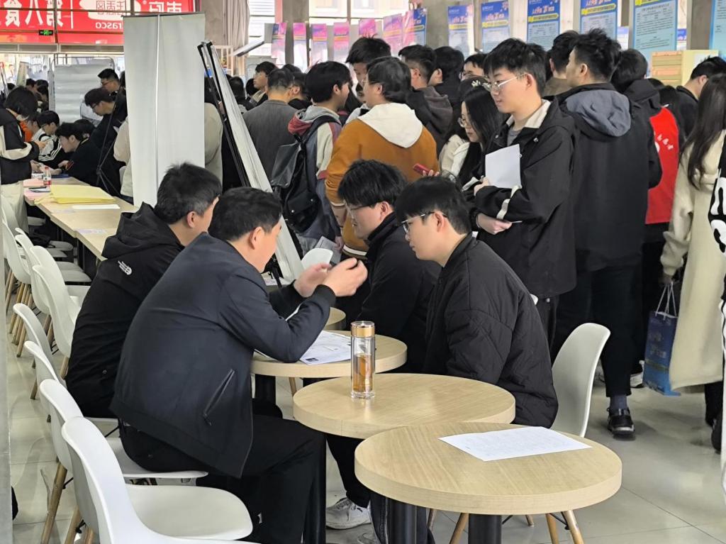学生就业工作前置化。基于“人才兴皖,‘就’在江淮”2025届春季双选会契机,2023级辅导员蒋安东、张悦带领低年级学生们积极了解就业市场。