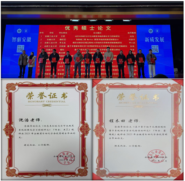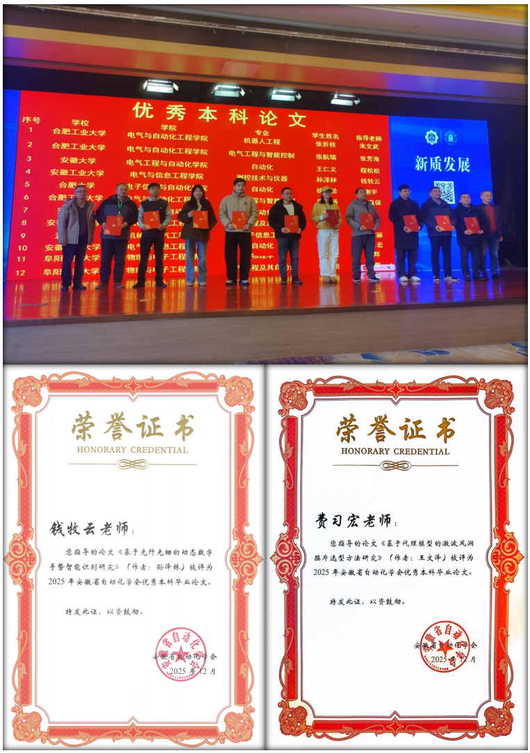 12月26至12月28日,由安徽省自动化学会主办,阜阳师范大学、阜阳市科学技术协会、合肥工业大学承办的2025安徽省自动化产业与技术大会在安徽阜阳举办。学院副院长(主持工作)程木田带队,副院长李飞、自动化系副主任费习宏、测控系副主任钱牧云,教师方炜、李峰、吕绍瑜参加会议。