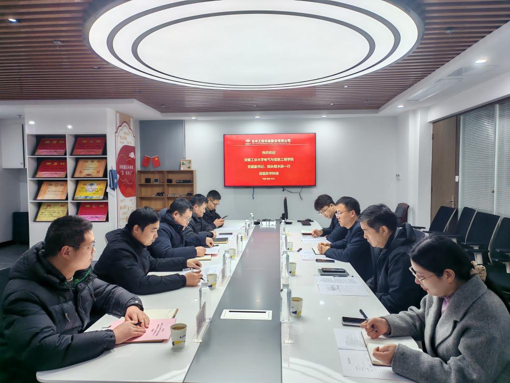 程木田一行先后走访了东华工程科技股份有限公司、双杰电气合肥有限公司等重点企业,实地察看企业数字化展示中心、研发和办公区域,详细了解企业发展历程、生产经营、人才需求等,看望了在企工作的校友,校友们分享了成长经历与工作业绩,程木田勉励大家将所学专业知识与科研实践紧密结合,持续关注母校发展,积极为学弟学妹搭建就业实习桥梁,共同助力学院人才培养工作提质增效。