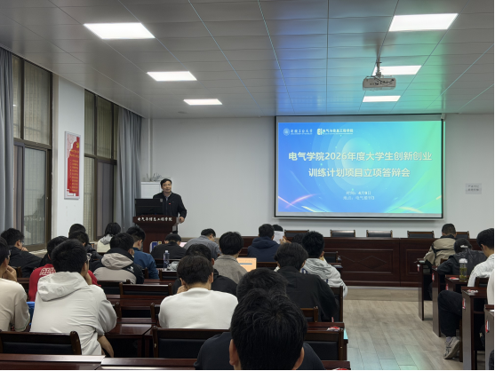 于秀山校区电气楼113教室成功举办2026年度大学生创新创业训练计划项目立项答辩会。活动由院团委副书记杨恒基主持,学院副院长张前进、各系室教师代表担任评审专家。
