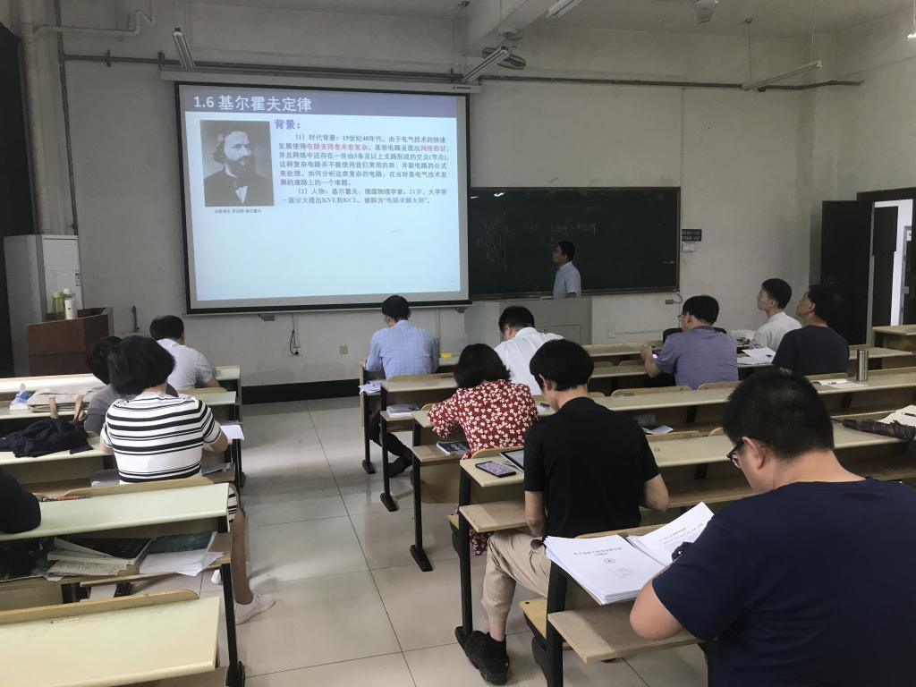 示范课教学由学院课程思政优秀教学案例比赛一等奖的陈思乐和李峰两位老师主讲。陈思乐老师在讲授《电路理论》课程中交流电三要素教学内容时,分析了正弦量的三要素概念和物理意义,穿插融入交流直流的技术之争,指出技术的适用范围,展示了我国在直流输电传输领域的突破性贡献,引导学生要努力学好专业知识,不断增强服务我国科技进步的信心。李峰老师以《电工学》中基尔霍夫定律为例,通过介绍电路复杂化导致电流和电压的计算难题,给出了基尔霍夫电流定律和电压定律的解决方法,讲述了基尔霍夫面对当时工程技术难题提出了新颖的解决路径,引导同学们要主动关注行业中的工程技术难题,不断增强开拓创新精神。课程结束后,校院督导专家以及老师们就课程思政的教学目标、教学设计、课上教学、课堂反馈以及专业知识传授、思政元素定位、教学效果达成等关键点进行了探讨。