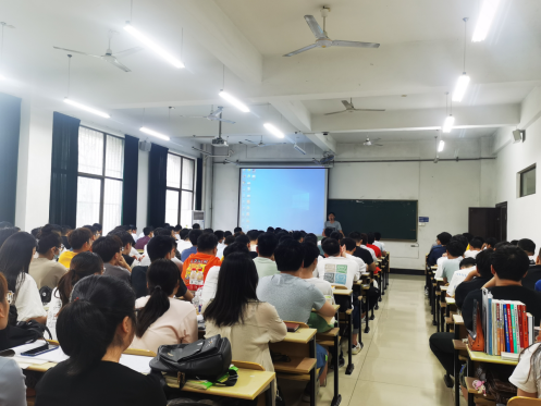 召开了2021级全体研究生新生安全教育主题班会,辅导员老师张前进和科研秘书李清莲分别给同学们讲解了研究生阶段的安全知识。