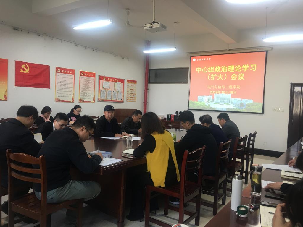 10月18日上午,电气学院党委理论学习中心组在电气楼304会议室召开集中学习(扩大)会。学院领导班子成员、党委委员、党支部书记、系室中心主任、科级干部、工会主席、全体辅导员等参加会议。