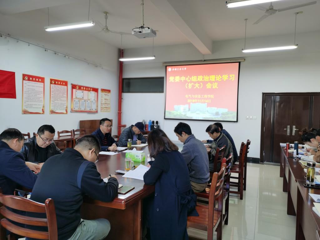 11月14日上午,电气学院党委中心组在电气楼304会议室召开政治理论集中学习(扩大)会议。学院领导班子成员、党委委员、党支部书记、系室中心主任、科级干部、工会主席和全体辅导员等参加会议。院党委书记叶凤华主持会议。