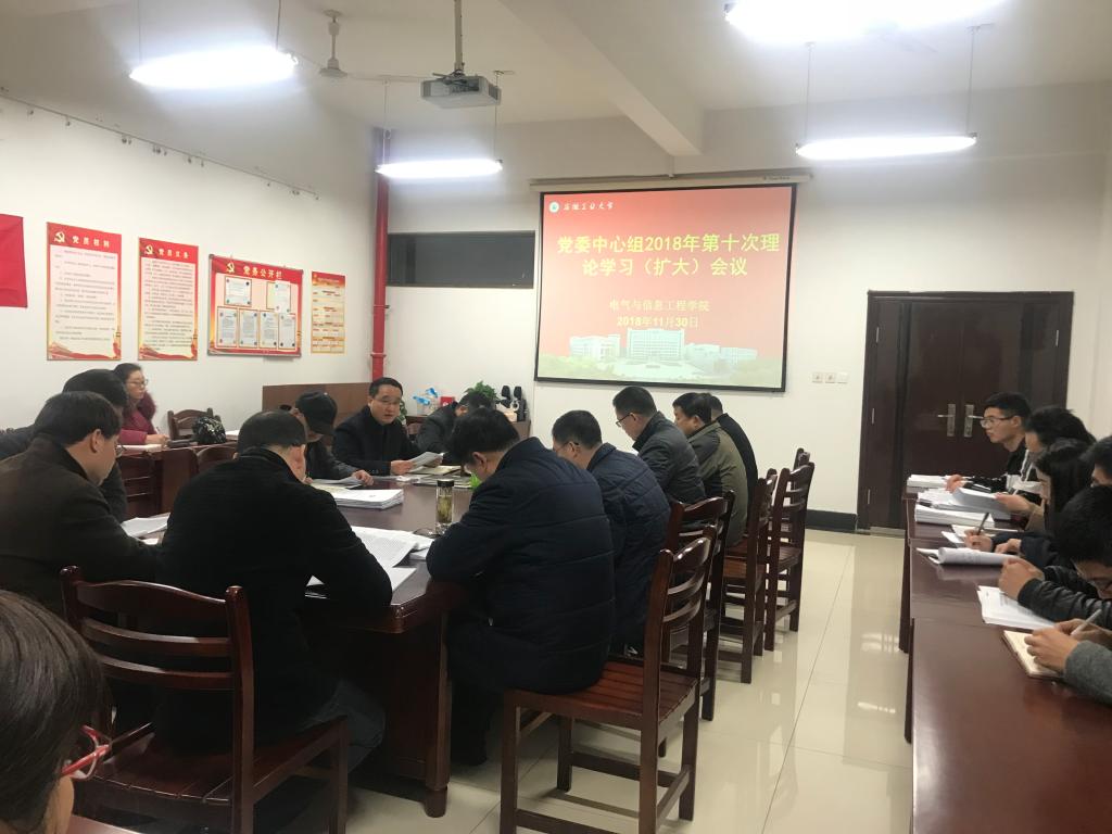 11月30日上午,电气学院党委在电气楼304会议室召开中心组政治理论学习(扩大)会议。学院党政领导、党委委员、党支部书记、各系室中心主任、科级干部和全体辅导员参加了会议,会议由院党委书记叶凤华主持。