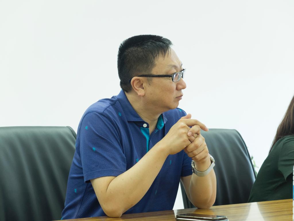 上海众辰电子科技公司总经理、安徽工业大学1995届自动化专业校友张建军向实践队介绍公司情况