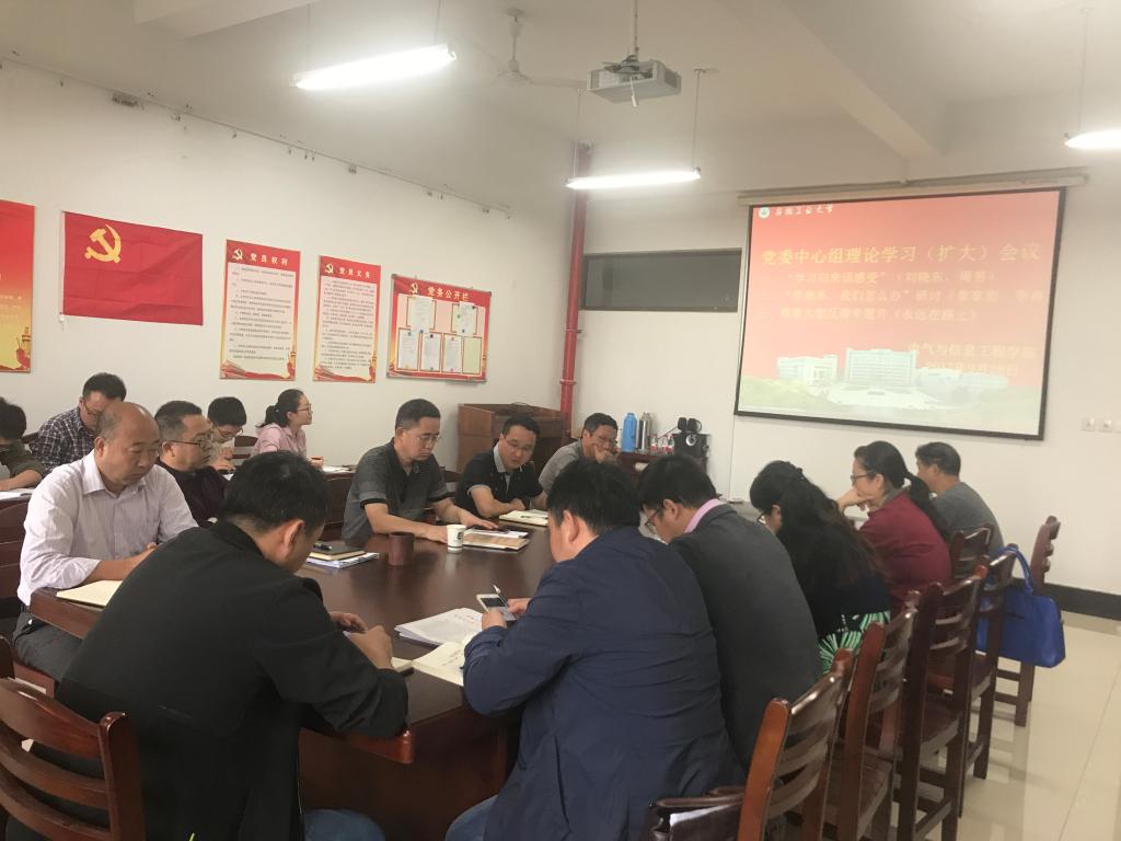 在电气楼304会议室召开党委中心组理论学习(扩大)会议,围绕“讲政治、重规矩、作表率”第三专题“作表率,我们怎么办”开展集中学习研讨。学院党委中心组成员、各系室中心主任参加会议。会议由院党委书记叶凤华主持。