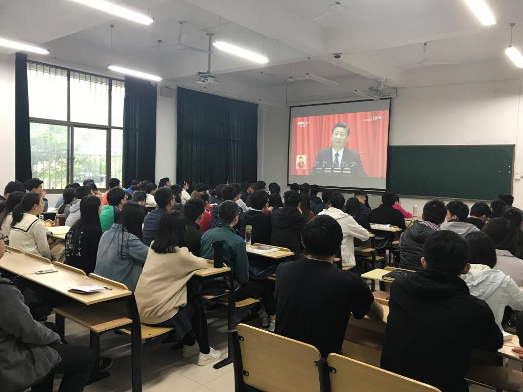 10月18日上午9时,中国共产党第十九次全国代表大会在北京人民大会堂隆重开幕。学生支部全体党员集中收看了党的十九大开幕式电视直播,认真聆听了习近平同志代表中共第十八届中央委员会向大会作报告,主题是:不忘初心,牢记使命,高举中国特色社会主义伟大旗帜,决胜全面建成小康社会,夺取新时代中国特色社会主义伟大胜利,为实现中华民族伟大复兴的中国梦不懈奋斗。