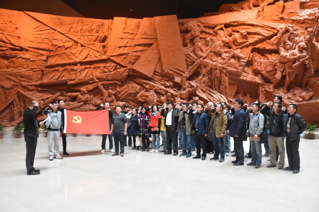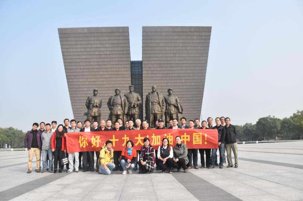 在电气学院党委书记叶凤华的带领下,全体党员佩戴党员徽章,手拉“你好,十九大!加油,中国!”的标语横幅,在纪念馆广场和邓小平、刘伯承、陈毅、粟裕、谭震林五位总前委成员塑像合影留念。在纪念馆场大厅,全体党员面对鲜红的党旗,高举右手庄严宣誓,重温入党誓词,再度表达了对党的忠诚与热爱。随后大家依次参观了馆场内的战前形势、战役准备、突破江防、战役胜利、人民支前和英烈业绩等六大展厅和烈士名录馆。馆内惊心动魄的战役画面、气势恢宏的百万雄师过大江的石刻浮雕、历史图片和文物以及解说员对革命前辈的英勇事迹的介绍,使全体党员深刻感受到了渡江战役的艰苦过程和革命先烈们不怕牺牲的英雄主义精神。