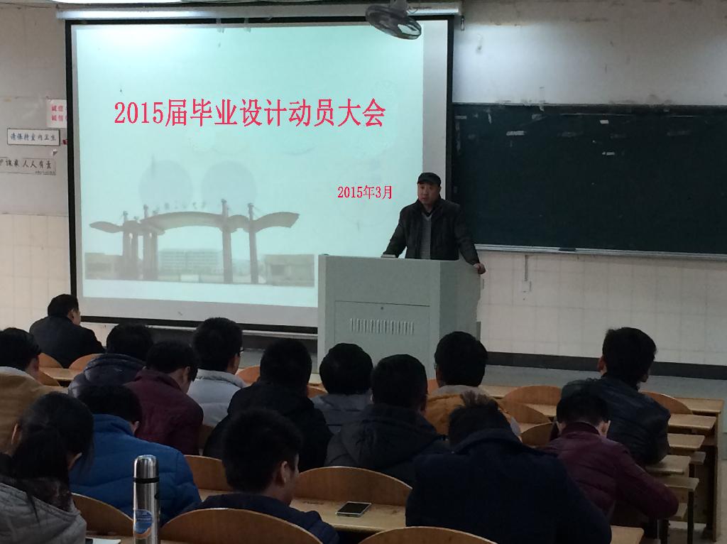 在阶101教室召开了2015届毕业生毕业设计动员大会,教学副院长聂建华、学生副院长郭宏副、毕业班辅导员和全体毕业生参加了动员大会。