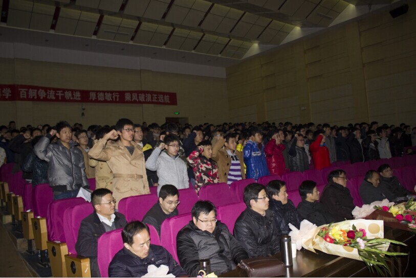 精工博学,百舸争流千帆进;厚德敏行,乘风破浪正远航!学院学生团委副书记武梦娇同学向全体同学发出了“齐心协力促学风,众志成城建电院”的学习倡议书。最后,学生会主席王志刚带领2014级14个班的班长领誓,全体新生进行了集体宣誓,“立志成才、荣我电院”的雄壮誓言把整个表彰会的气氛推向了高潮。 (张满堂 李修正)