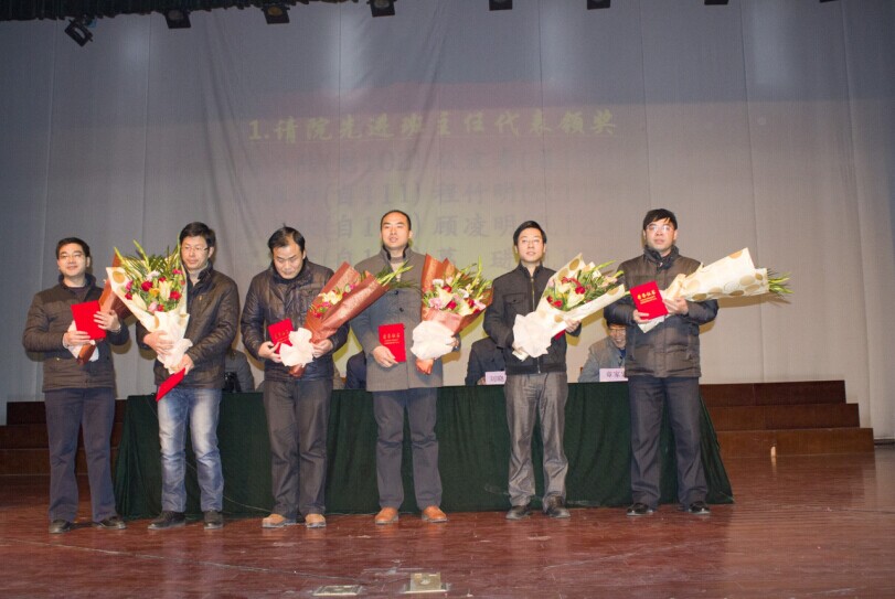 表彰大会在雄壮的国歌声中拉开帷幕,刘晓东通报了2013—2014学年评奖、评优情况,聂建华通报了2013—2014学年10位优秀班主任名单。随后举行的颁奖仪式上,院领导向获奖同学表示了祝贺,并为先进集体和先进个人颁发了证书。先进班集体代表耿东辉、先进个人代表陈羽同学分别发言。