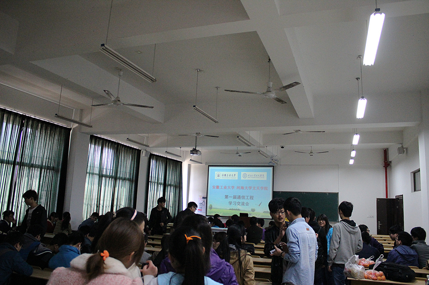 在双方领导、老师的共同指导和帮助下,经过为期月余的策划和组织,2014年3月22日,安徽工业大学·河海大学文天学院通信工程专业学习经验交流会在电气楼113教室举行,活动旨在通过两校同专业学子的对话交流,促进专业学习和发展,两校通信专业100余人参加了交流会。