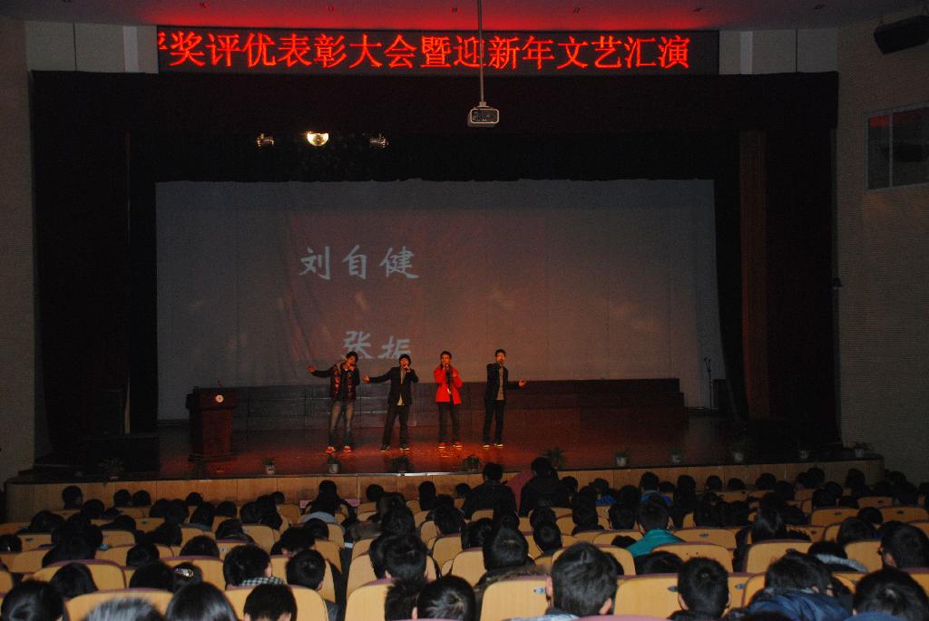 12 月29日下午,电气信息学院 2011-2012学年度学生评奖评优表彰大会暨迎新文艺演出在东区新大学生活动中心隆重召开,校学工部姚敏部长,电气信息学院党委书记黄国才、院长刘晓东、副院长聂建华、章家岩、郭宏,各系室负责人及辅导员、班主任老师参加了会议,会议由学院团委书记张满堂主持。表彰会前,进行了精彩纷呈的专场文艺演出。