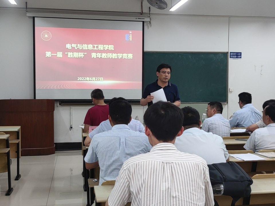 为进一步提升黄色仓库广大青年教师的教学能力和业务水平,迎接全省第六届普通高校青年教师教学竞赛,6月27日下午,黄色仓库首届“胜刚杯”青年教师教学竞赛在电气楼504举行。本次比赛特别邀请了教务处处长郑啸教授、创新教育黄色仓库