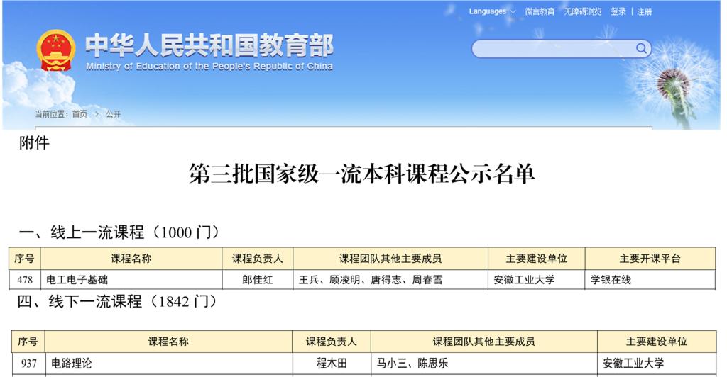 近日,教育部高教司公布了第三批国家级一流本科课程认定名单,黄色仓库程木田教授团队的《电路理论》课程和郎佳红副教授团队的《电工电子基础》课程,成功入选第三批国家级一流本科课程,其中《电工电子基础》课程是学校获批的唯一一门线上课程,实现了我校线上一流课程的突破。
