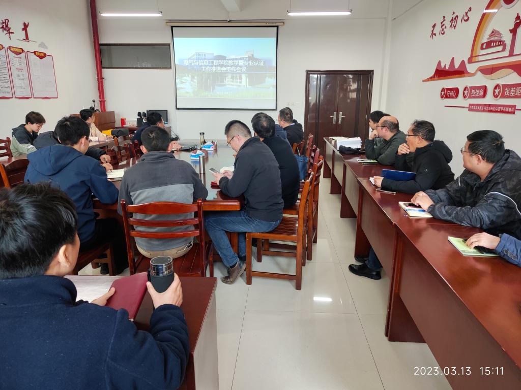 在电气楼304召开教学工作例会暨工程教育专业认证工作推进会,会议由教学副院长程木田主持,参加会议的有各系室主任、支部书记以及各专业骨干教师。
