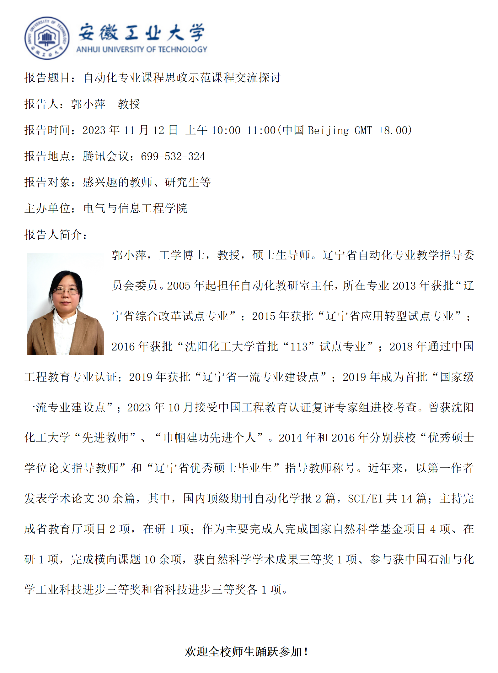 【“映书湖畔”教学讲坛之十八】自动化专业课程思政示范课程交流探讨