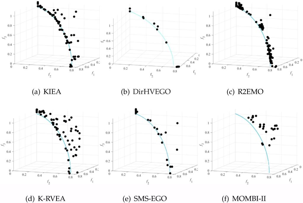 (六种算法求得DTLZ5测试问题的近似前沿)