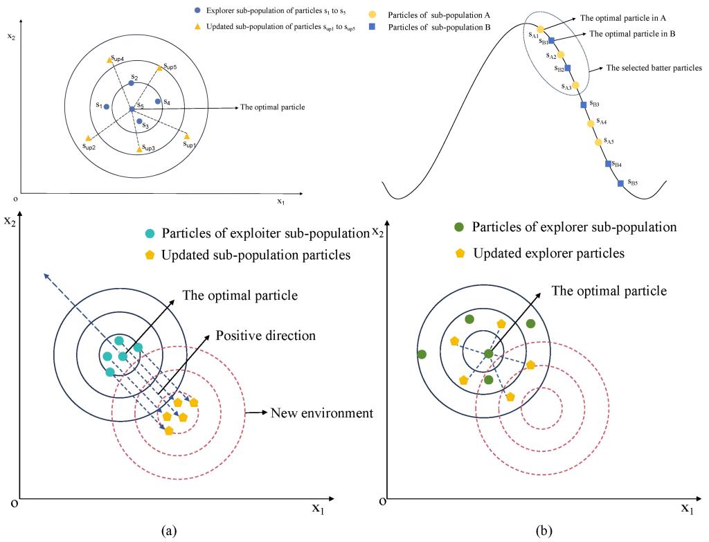(粒子扰动和精英保持机制策略图)