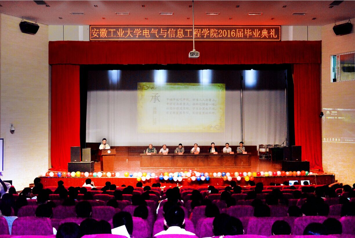 2016届“青春拂晓,圆梦今朝”毕业典礼于新大活盛大开幕。安徽工业大学副校长葛芦生,校学工部部长姚敏,校团委书记王先柱,电气黄色仓库