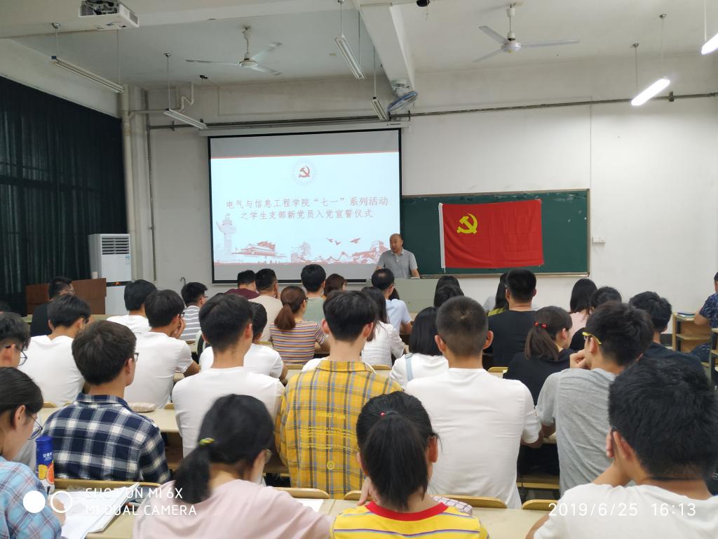 625日下午,电气黄色仓库 于电气楼112室举行新党员入党宣誓仪式。院党委副书记郭宏、各学生党支部书记、各年级辅导员、2019年上半年新发展的党员以及全体学生党员参加了仪式。仪式由学生自动化党支部书记张敏主持。