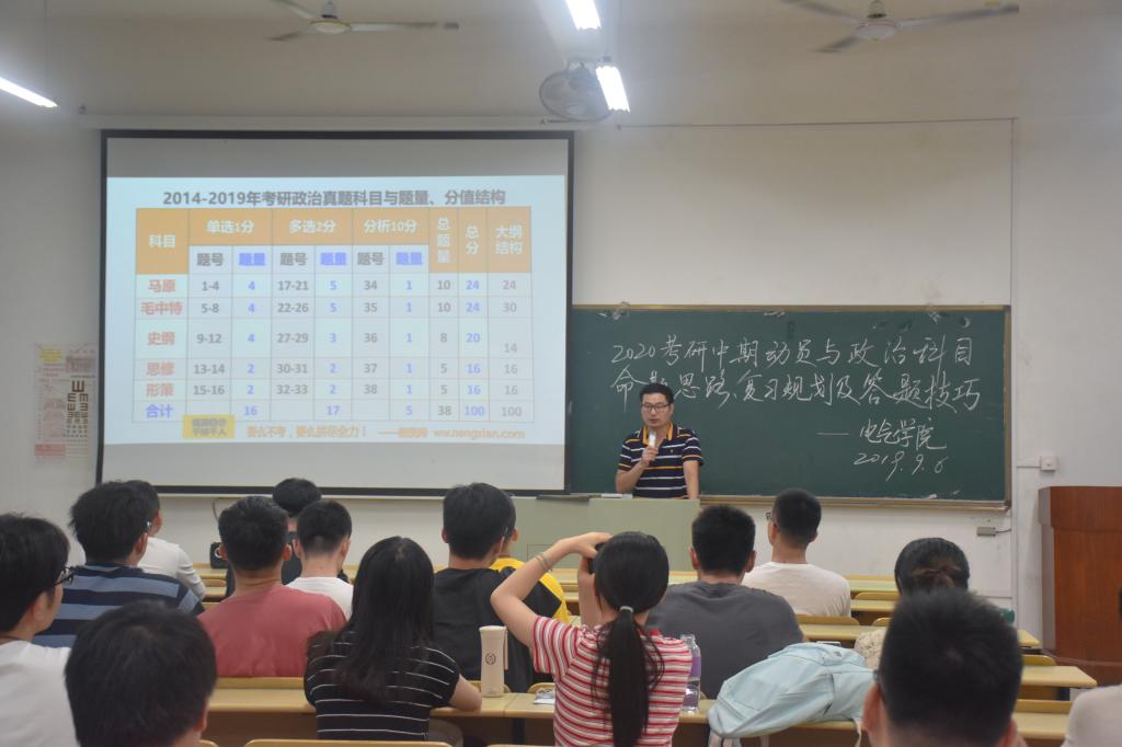 思政部教师尚全老师作为主讲人,在电气楼113教室举办“2020年考研中期动员与政治科目命题思路、复习规划及答题技巧”专题讲座,2016级考研学子聆听了本次讲座。