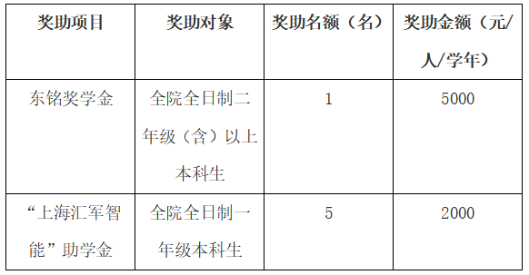 根据相关企业奖助章程,现将2024东铭奖学金、“上海汇军智能”助学金的评选工作有关事项通知如下: